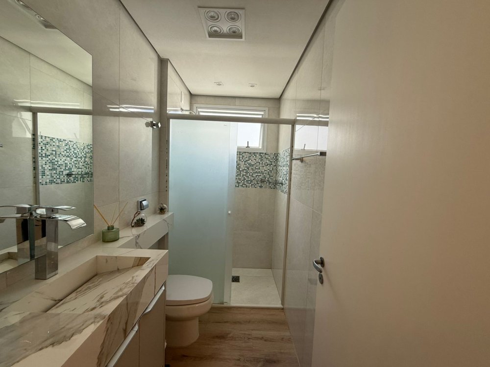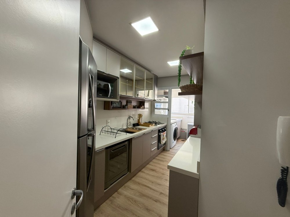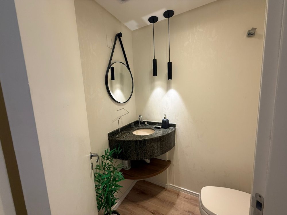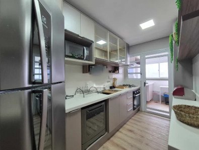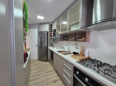Possui 3 dormitórios (sendo 1 suíte), lavabo, cozinha completa, lavanderia equipada e 2 vagas de garagem.