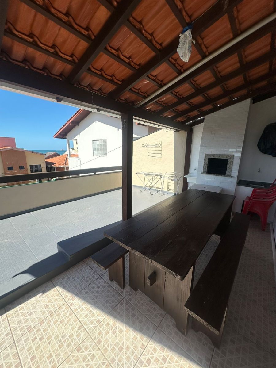 Área externa com churrasqueira e vista deslumbrante para o mar