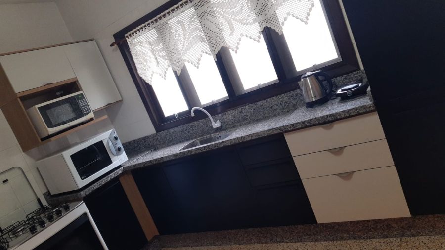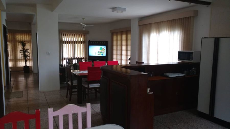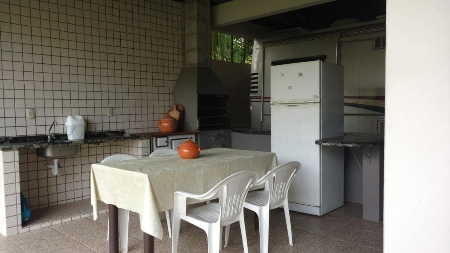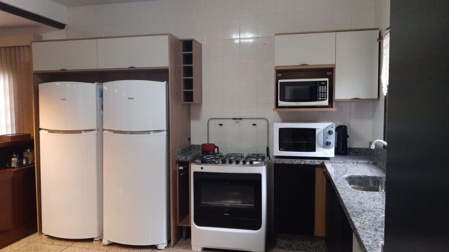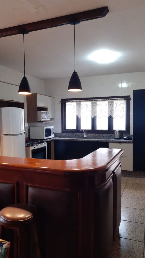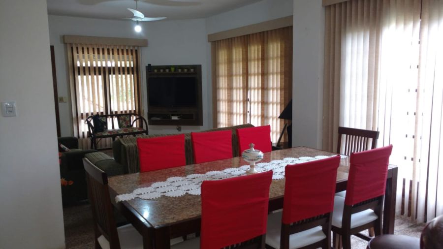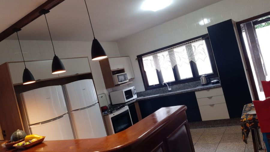 Sala de jantar e estar, cozinha completa e área externa ideal para confraternizar.
