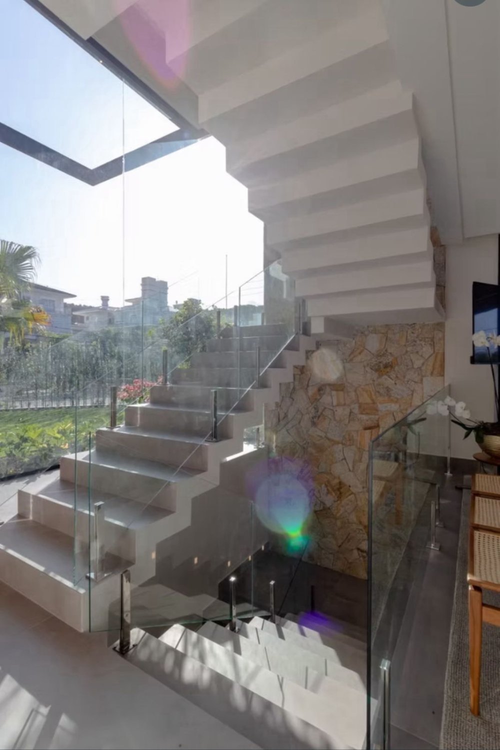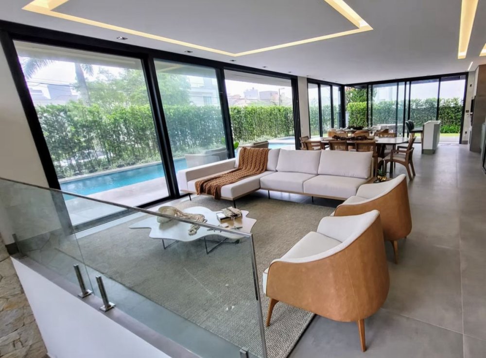 Grandes aberturas de vidro, favorecendo iluminação natural